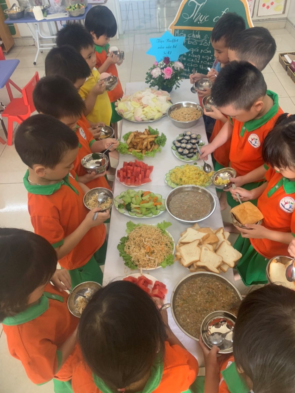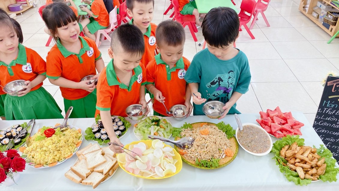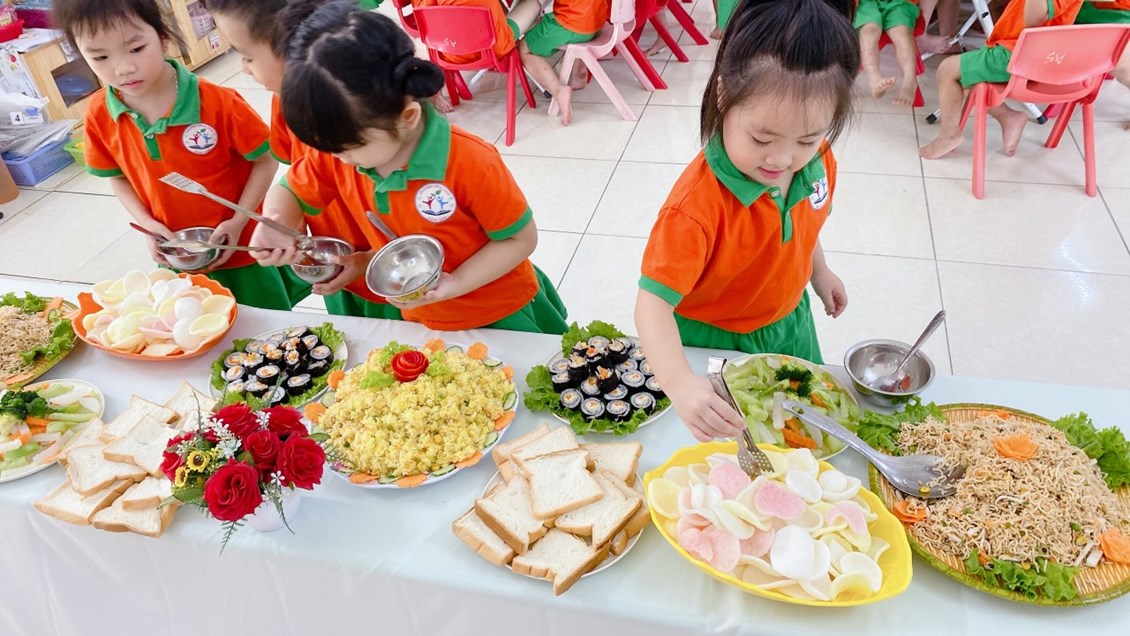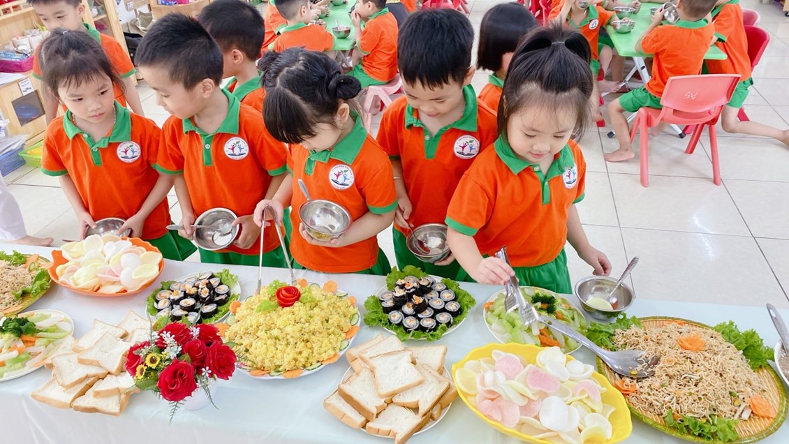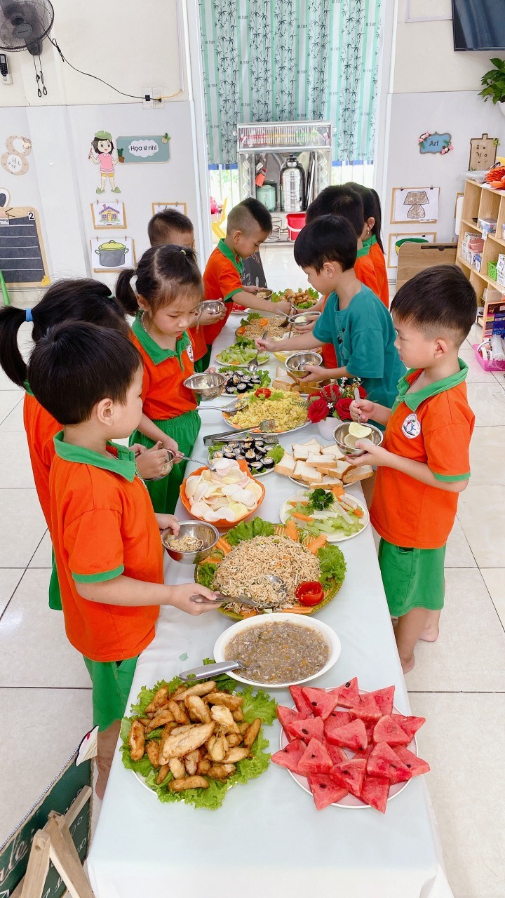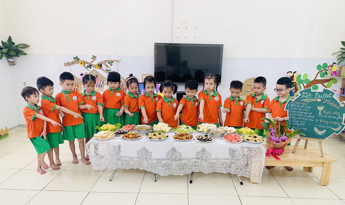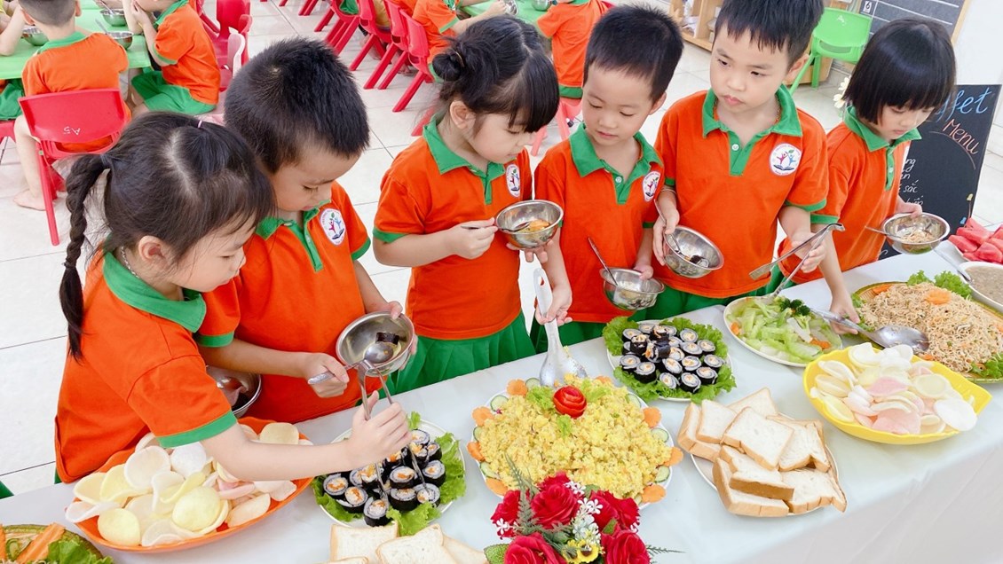 Vui vẻ, hấp dẫn và ngon miệng. Tiệc Buffet đã trở thành một ấn tượng hết sức khó quên trong lòng các bé; để mỗi ngày tới trường của các bé sẽ trở thành một ngày thật vui. Bên cạnh đó qua bữa tiệc này giúp cho các bậc phụ huynh tin tưởng, tự hào và còn là cơ hội, là cầu nối bền vững gắn kết giữa gia đình – nhà trường ngày càng thêm gắn bó.