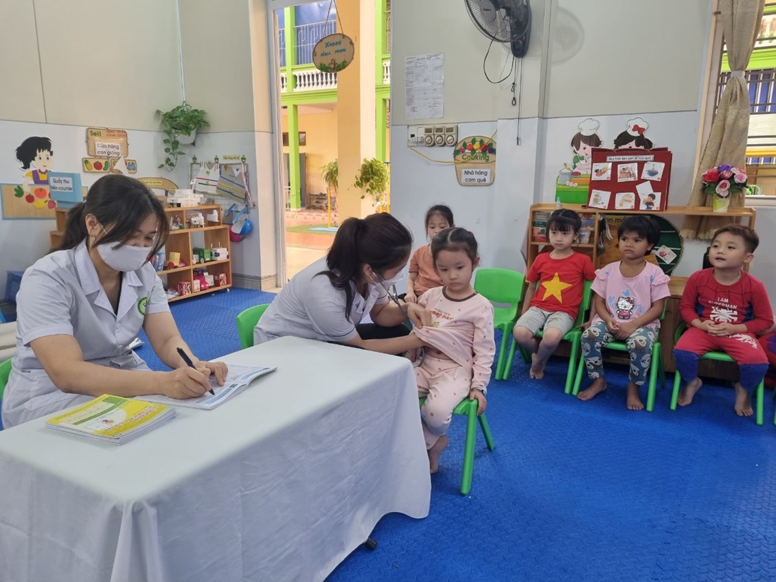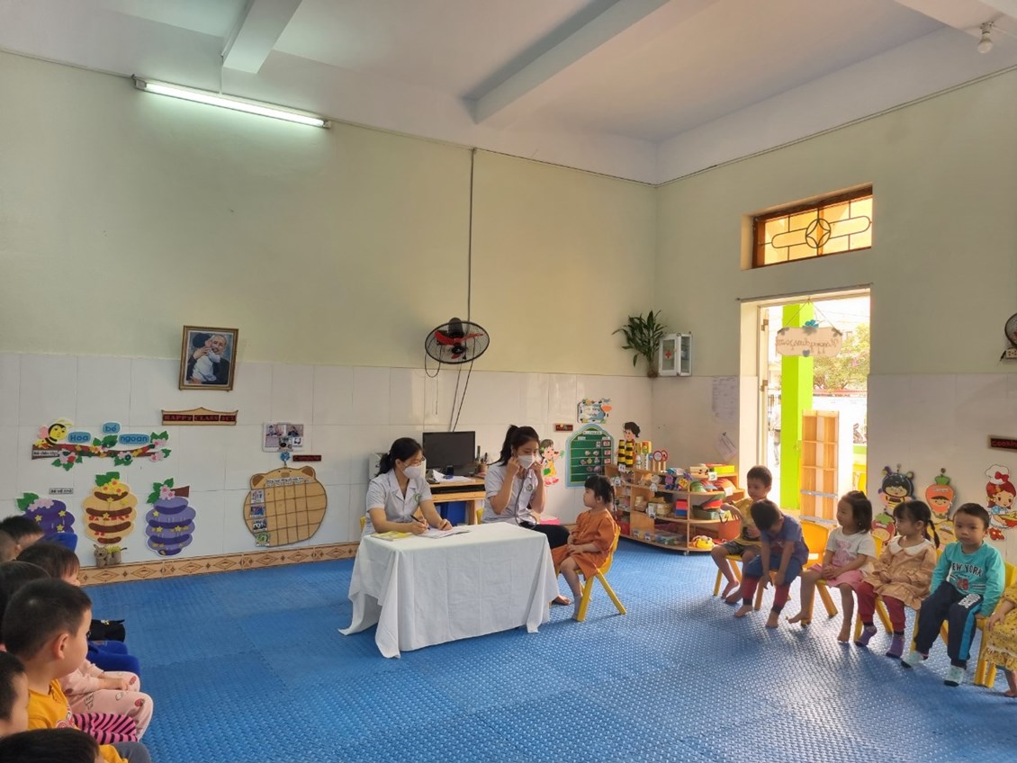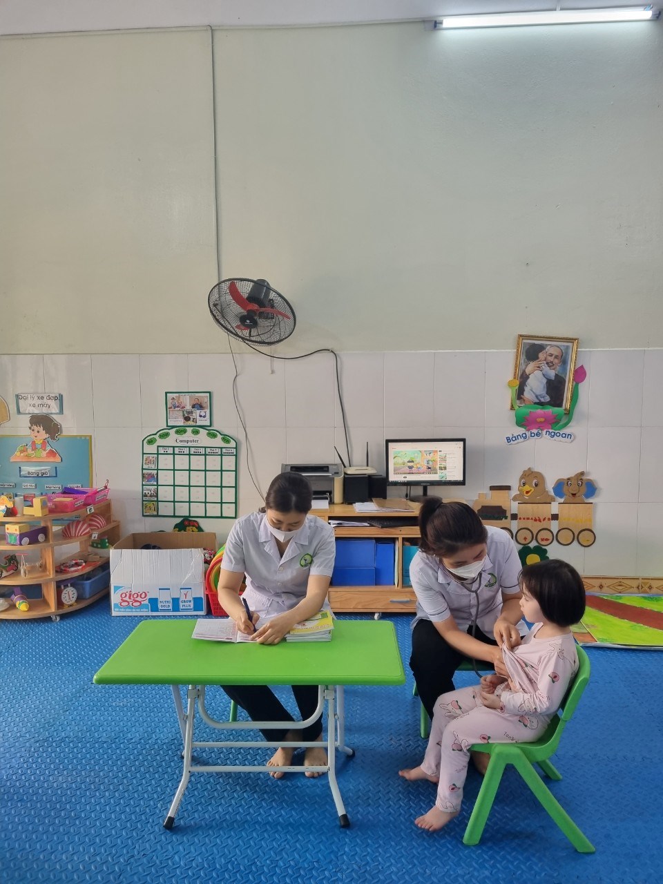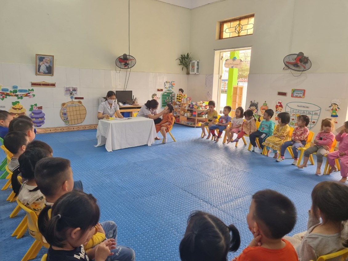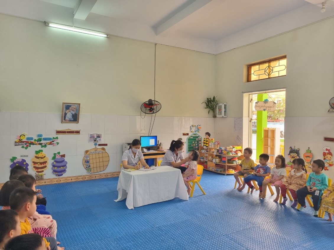 Trong các hoạt động của nhà trường, công tác chăm sóc sức khoẻ cho trẻ là một việc làm luôn được nhà trường đặc biệt quan tâm. Việc tổ chức khám sức khoẻ định kỳ cho trẻ đã được nhà trường duy trì thành nề nếp thực hiện