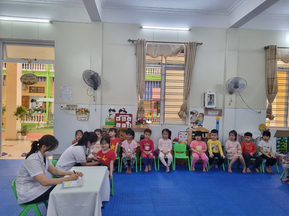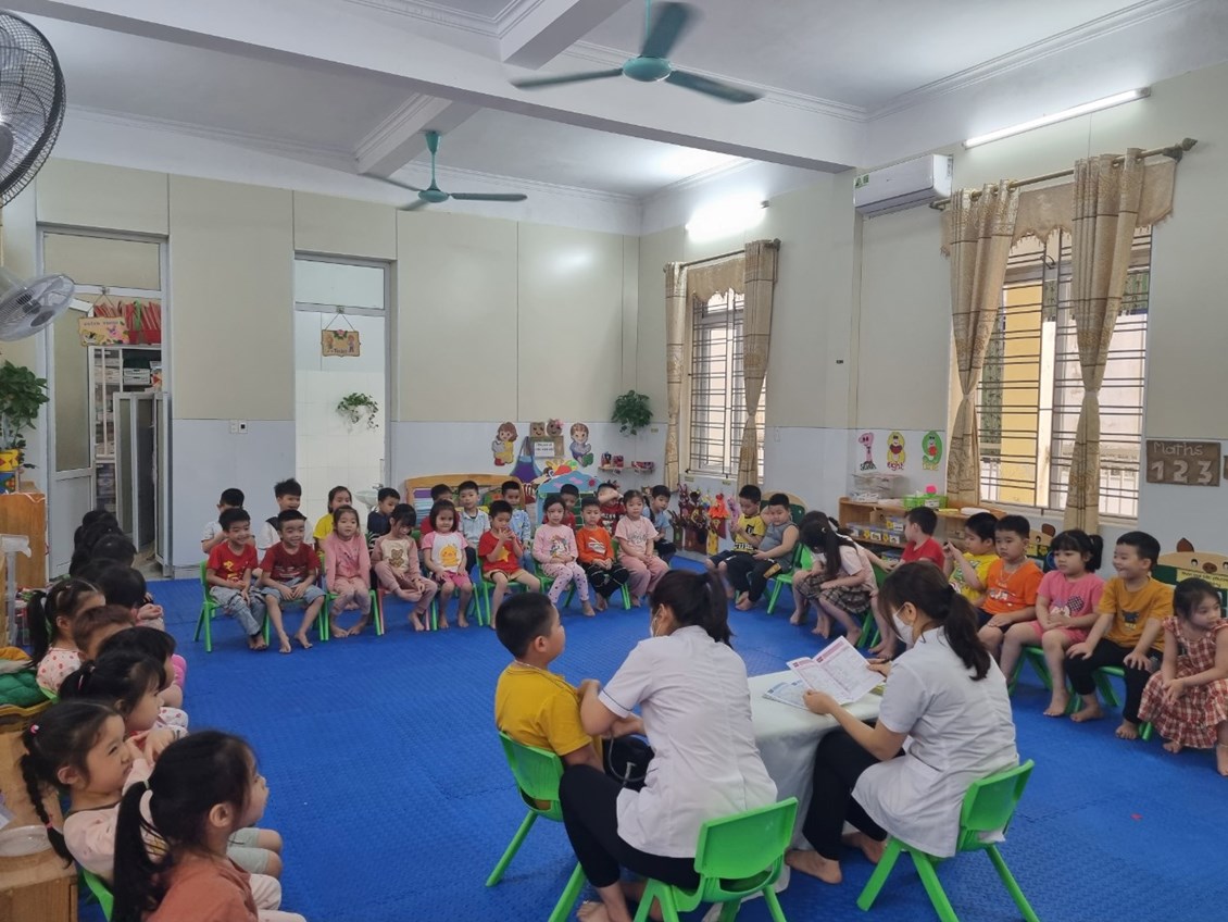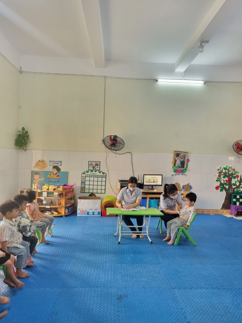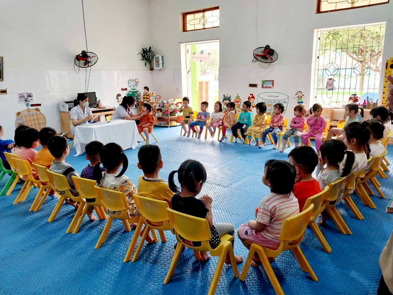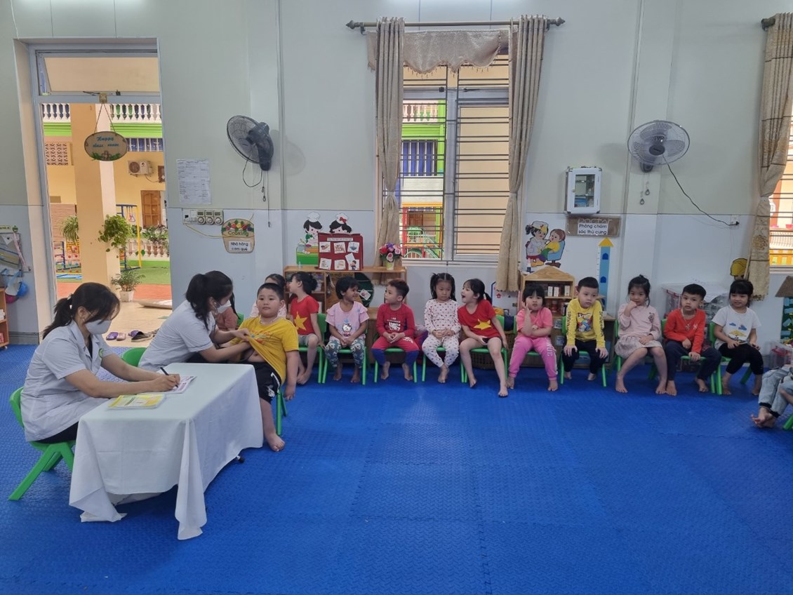 Trong các hoạt động của nhà trường, công tác chăm sóc sức khoẻ cho trẻ là một việc làm luôn được nhà trường đặc biệt quan tâm. Việc tổ chức khám sức khoẻ định kỳ cho trẻ đã được nhà trường duy trì thành nề nếp thực hiện