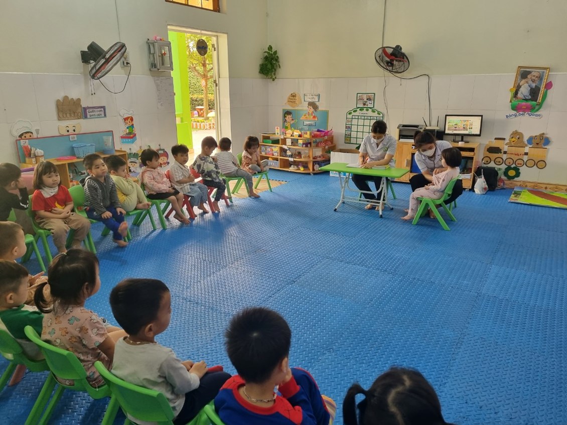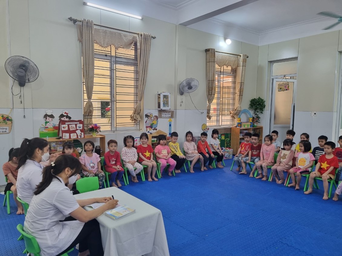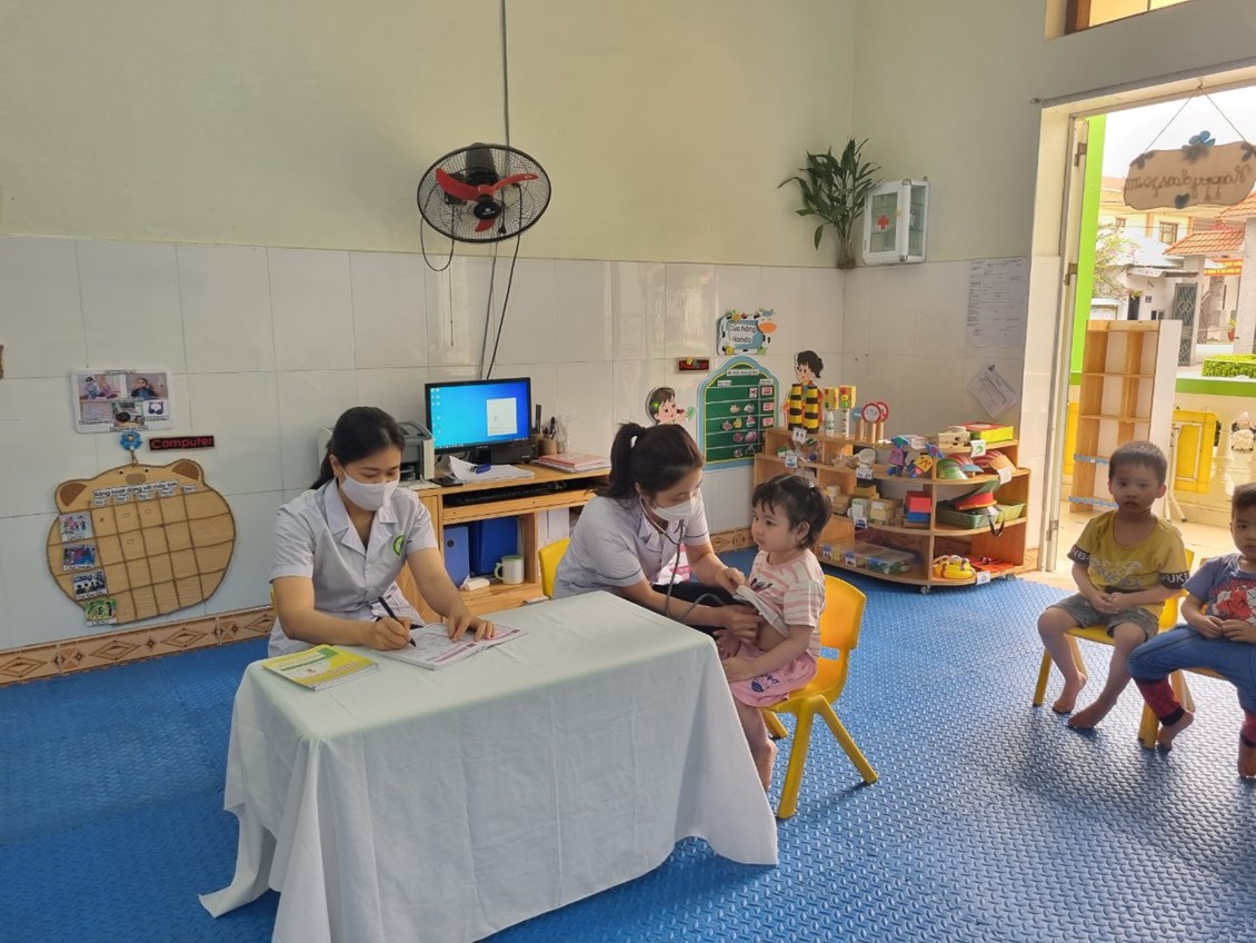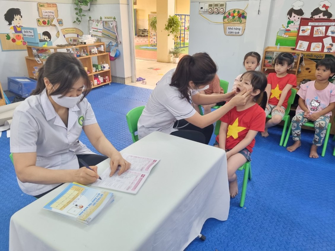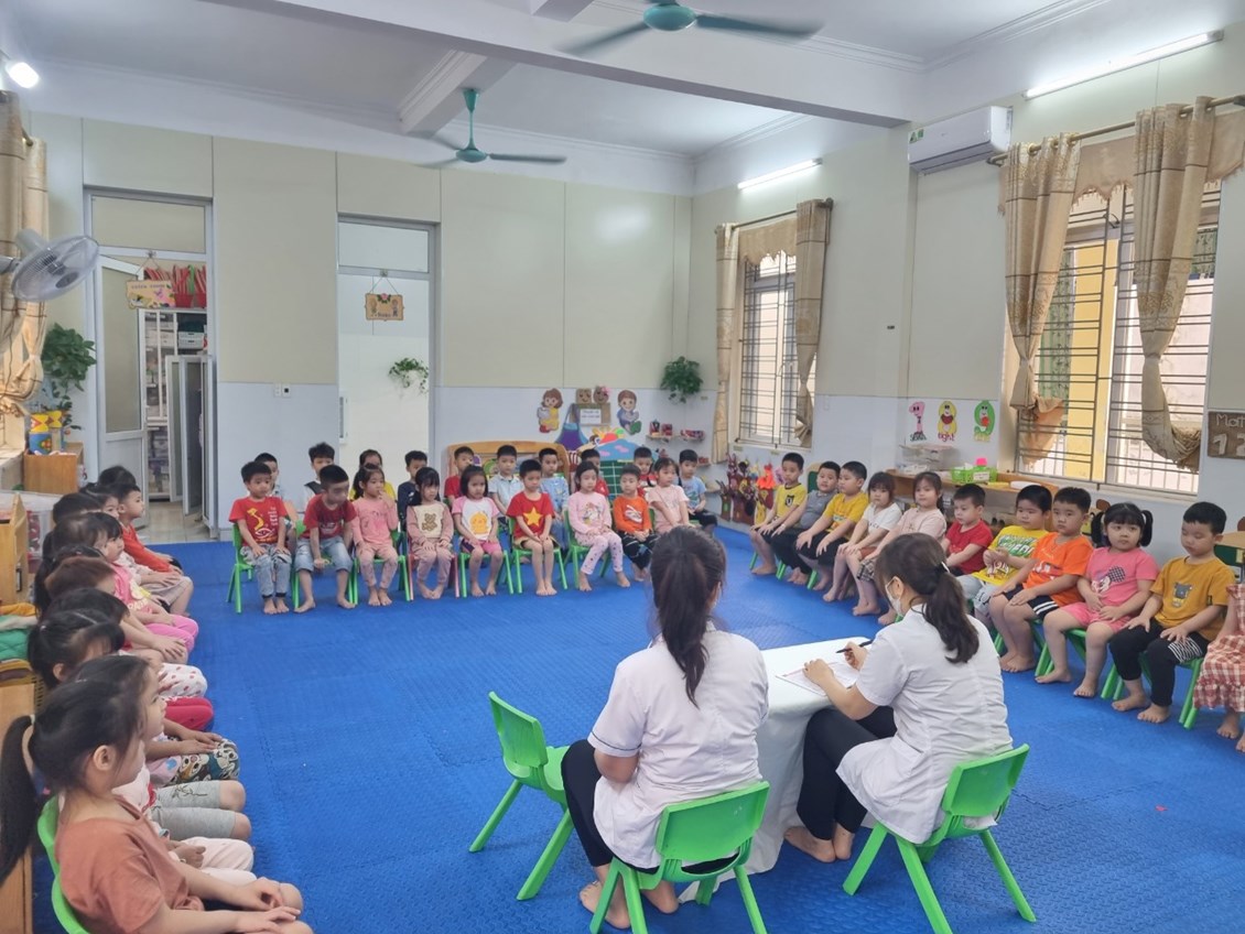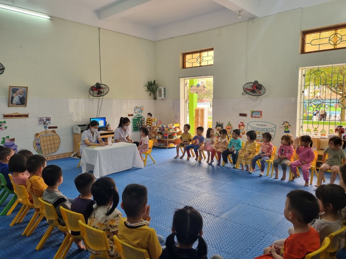 Trong các hoạt động của nhà trường, công tác chăm sóc sức khoẻ cho trẻ là một việc làm luôn được nhà trường đặc biệt quan tâm. Việc tổ chức khám sức khoẻ định kỳ cho trẻ đã được nhà trường duy trì thành nề nếp thực hiện