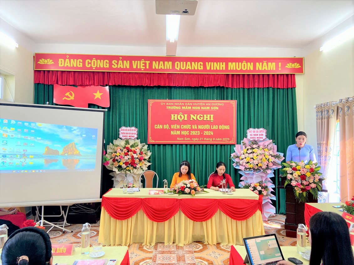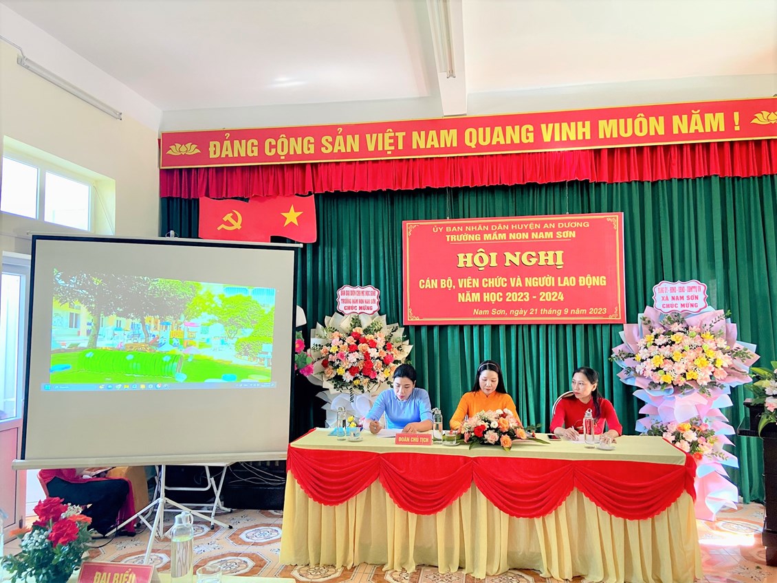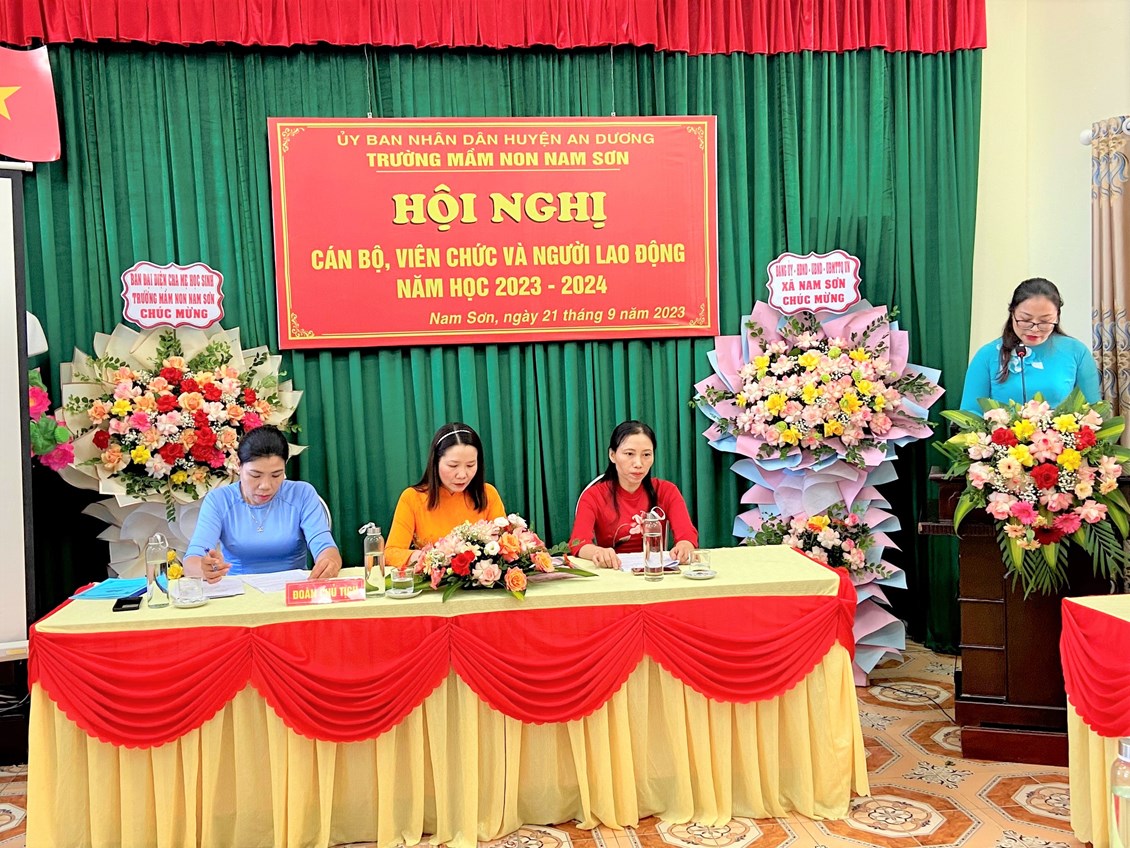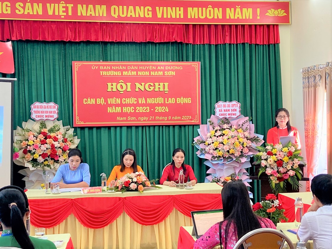 Chiều ngày 21/9/2023 trường Mầm non Nam Sơn long trọng tổ chức Hội nghị "Cán bộ, viên chức và người lao động" năm học 2023-2024. Về dự chỉ đạo và động viên hội nghị có các đồng chí đại biểu: