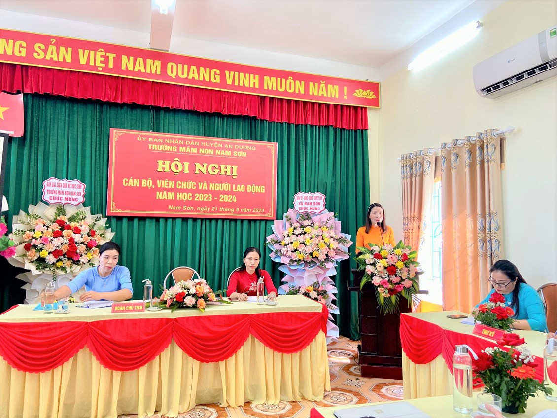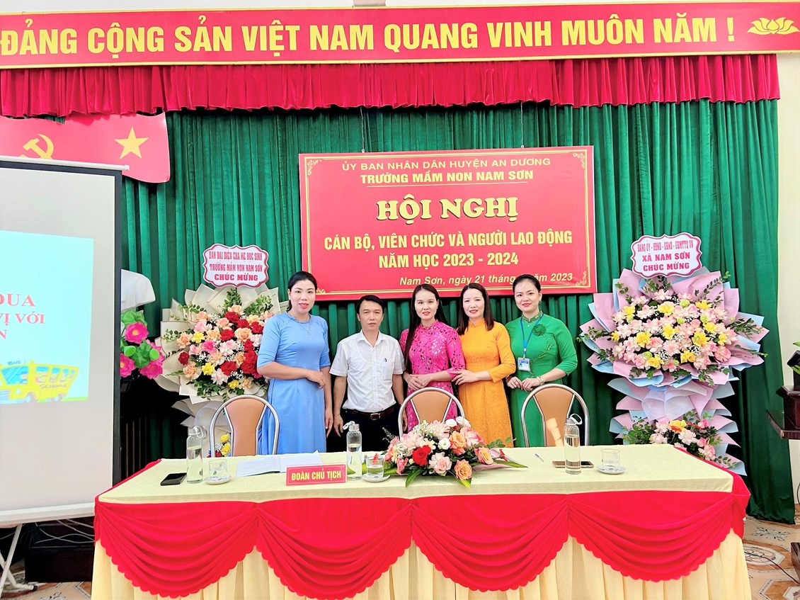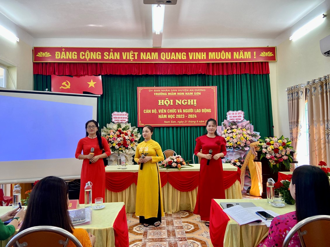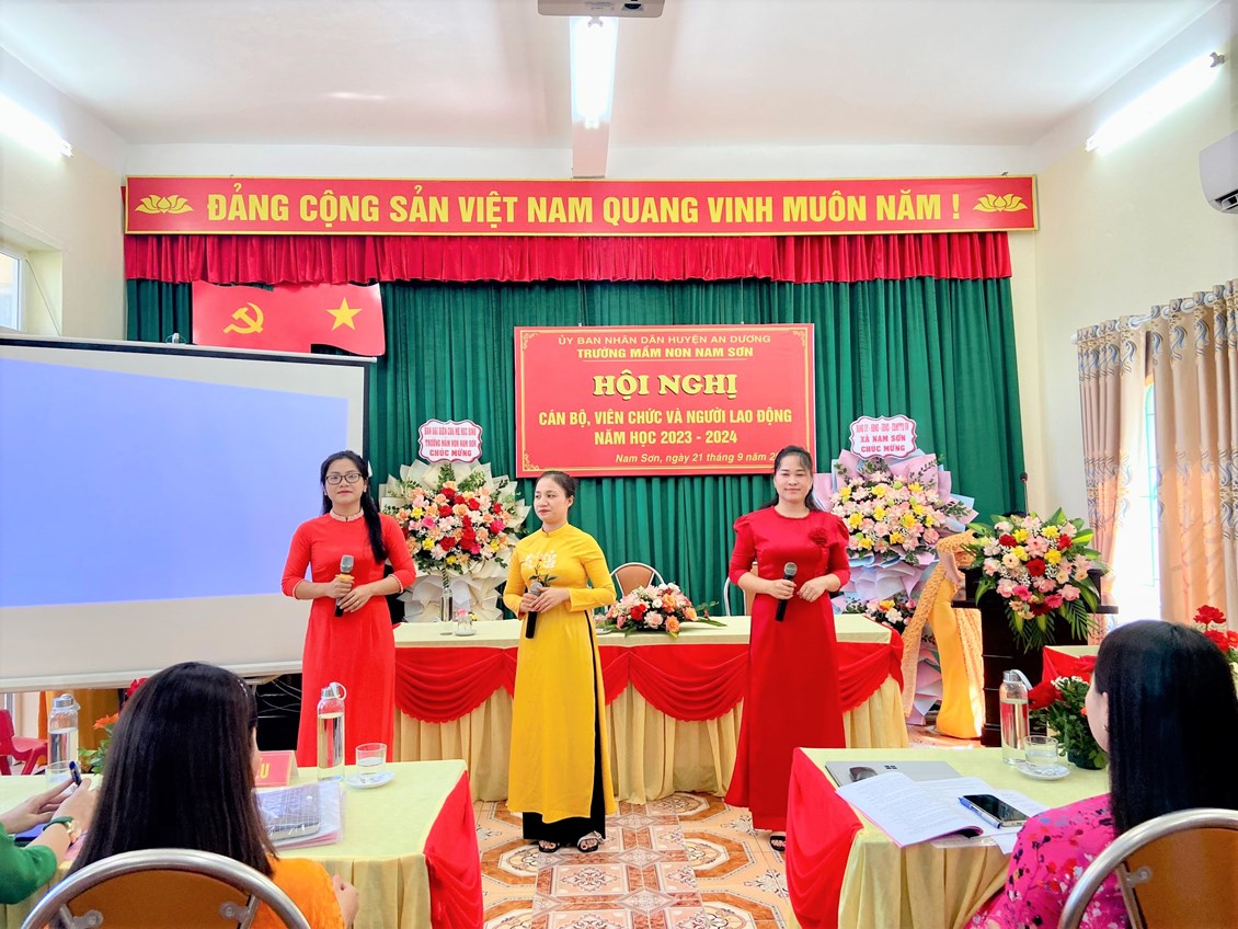 Chiều ngày 21/9/2023 trường Mầm non Nam Sơn long trọng tổ chức Hội nghị "Cán bộ, viên chức và người lao động" năm học 2023-2024. Về dự chỉ đạo và động viên hội nghị có các đồng chí đại biểu: