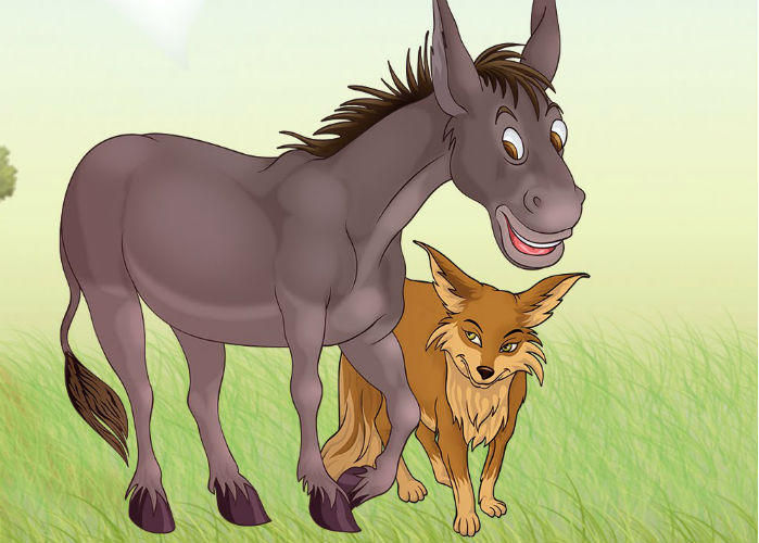 Một ngày nọ, khi đang đi, chú lừa gặp một con cáo và kết bạn với no. Chúng tìm thấy một cánh đồng trồng toàn dưa hấu và cùng nhau ăn. Dưa hấu quá ngon nên lừa ăn rất nhiều và cao hứng nói với con cáo rằng: