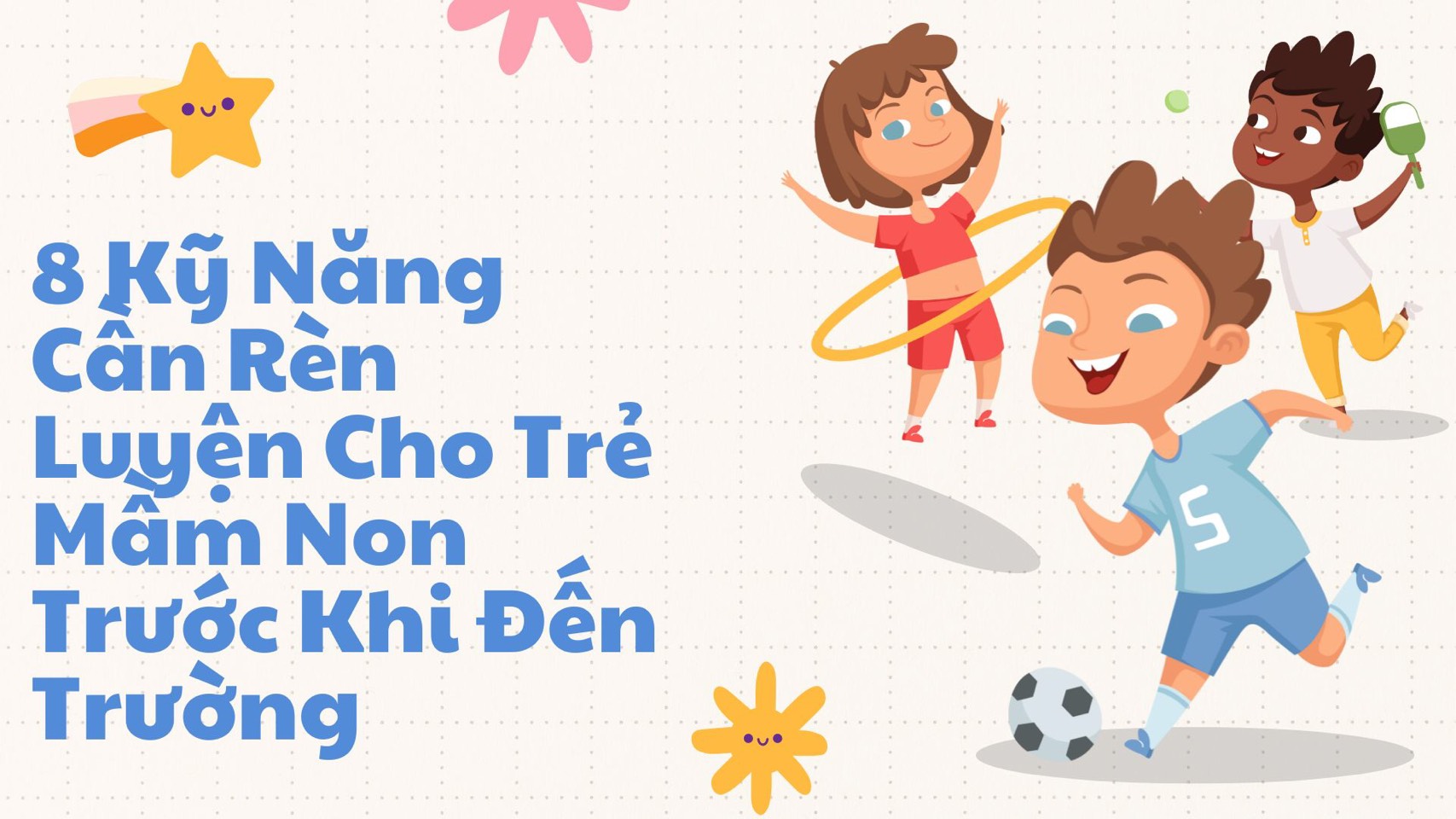 Năm học 2024 - 2025 sắp đến, đây là thời điểm mà các bạn nhỏ chuẩn bị bước chân đến trường. Đặc biệt, ở lứa tuổi mầm non (3-5 tuổi), đây là lần đầu trẻ được tiếp xúc với nhà trường, nơi không có bố mẹ, gia đình bên cạnh, thay vào đó giáo viên, bạn bè và một môi trường mới lạ hoàn toàn nhà của mình. Vì vậy mà ở những giai đoạn đầu, trẻ sẽ tỏ ra bất hợp tác trong việc đến trường, bố mẹ và nhà trường sẽ rất khó khăn trong việc phối hợp cho trẻ đến trường. Và để quá trình này trở nên dễ dàng hơn, bố mẹ nên rèn luyện cho trẻ những kỹ năng cần thiết trước khi cho trẻ đến trường. Và bài viết này, xin giới thiệu đến bố mẹ, các bậc phụ huynh 8 Kỹ năng cần rèn luyện cho trẻ mầm non trước khi đến trường.